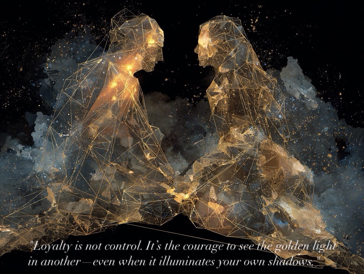 This is the loyalty of love—of seeing the golden light in another human, regardless of whether they agree with you. It’s the bond that exists before causal constructs, rooted in empathy, trust, and the invisible threads between souls. This loyalty is not negotiable, because it’s not transactional. It’s the recognition that another’s truth is just as valid as yours, even in disagreement.