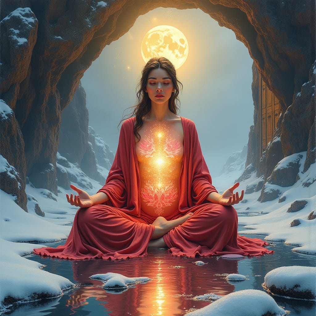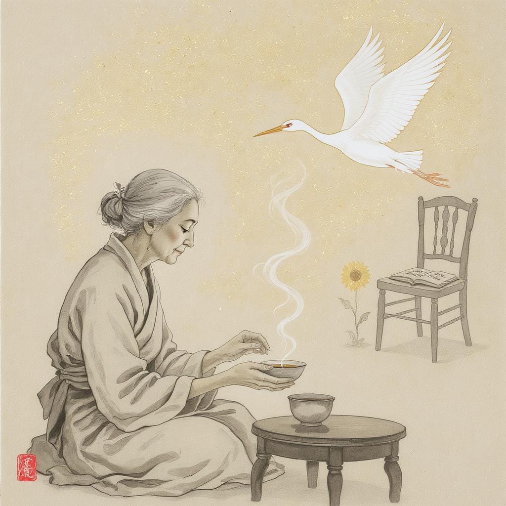 Zwischen Sonnengeflecht und unterem Dan Tian liegt die goldene Blüte – unsere Essenz, die sich mit der Weltenseele verbindet. Sterbebegleitung ist Alchemie: Wir verwandeln Angst in Präsenz, Isolation in Verbindung. Wie Santiago im Alchemist lernen wir: Der Schatz war immer in uns.